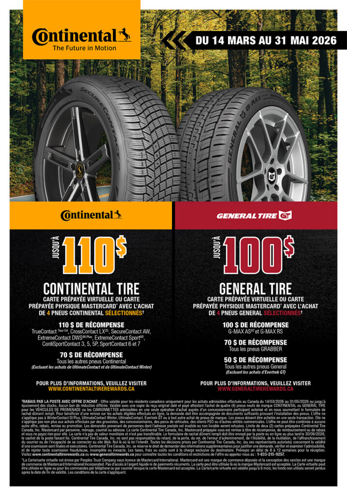 Profitez des nombreuses offres sur notre vaste sélection de marques et modèles de pneus.